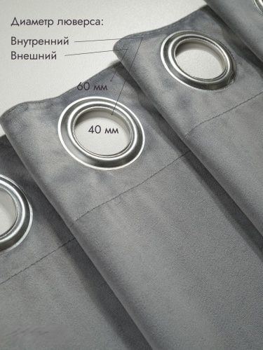Краткое описание «Штора для примерочной и дома на люверсах бархатная цвет серый, 1 шт»